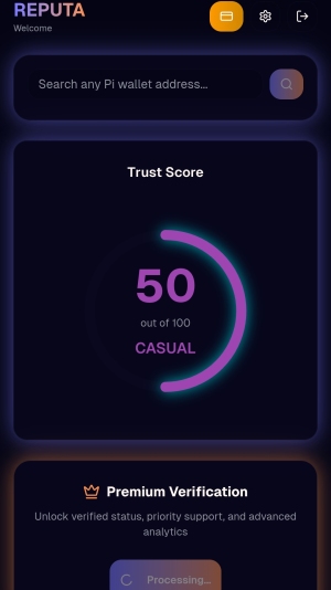 "REPUTA: The Pi trust engine. Calculate your score, unlock premium status, and trade securely within the elite Pioneer community."