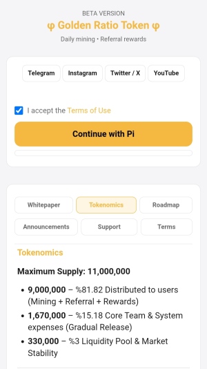 Mining Golden Ratio Token on Pi Network DEX. Free mining app.